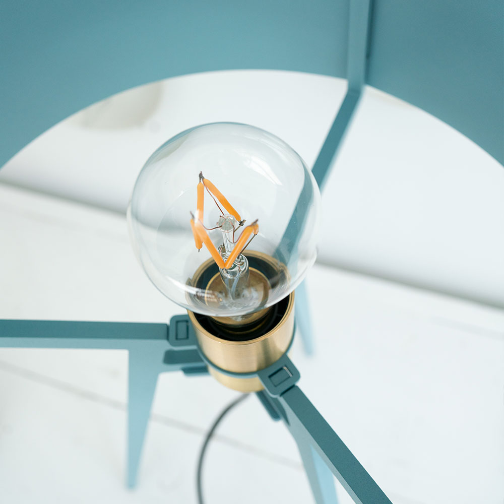 One of the things that make Bella unique is that she is (almost) completely screwless. The three legs on which Bella stands continue seamlessly toward the lamp shade where they form the ribs. In-between these ribs you will find a slot where you can clamp the loose plates, so that the separate elements come together as a whole. This construction is not only screwless, but also extremely strong.
