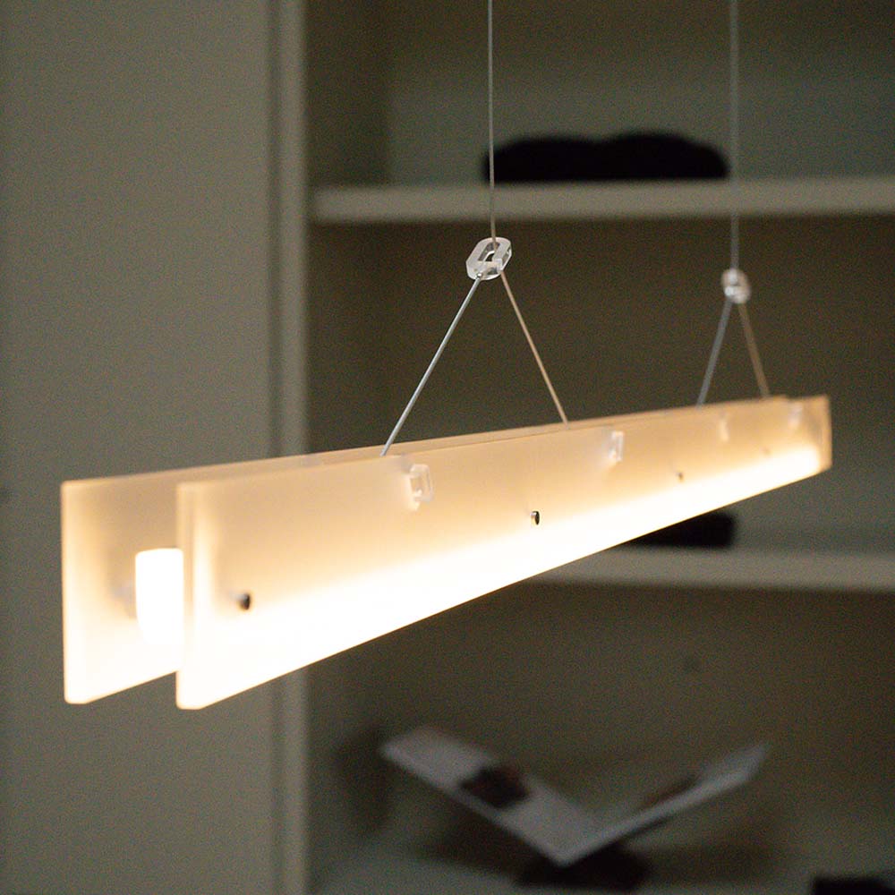 A lamp that invites you to play with lines and composition. Inspired by the structure of a bridge, Bridge combines strength with elegance. Like an actual bridge, it features multiple points of support, evenly distributing its weight along the length. And there’s no visible power cable, as electricity flows through the steel suspension wires that also hold the lamp in place.
