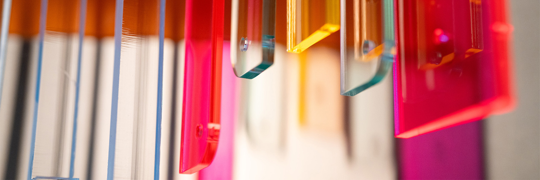 Bridge is made from recycled plexiglass and available in two vivid neon colours: Lava Orange and Toxic Green, as well as in the soft tone Fog White, Cocoa Brown and Smoke Grey. Available lengths: 110, 150, 180, and 220 cm.