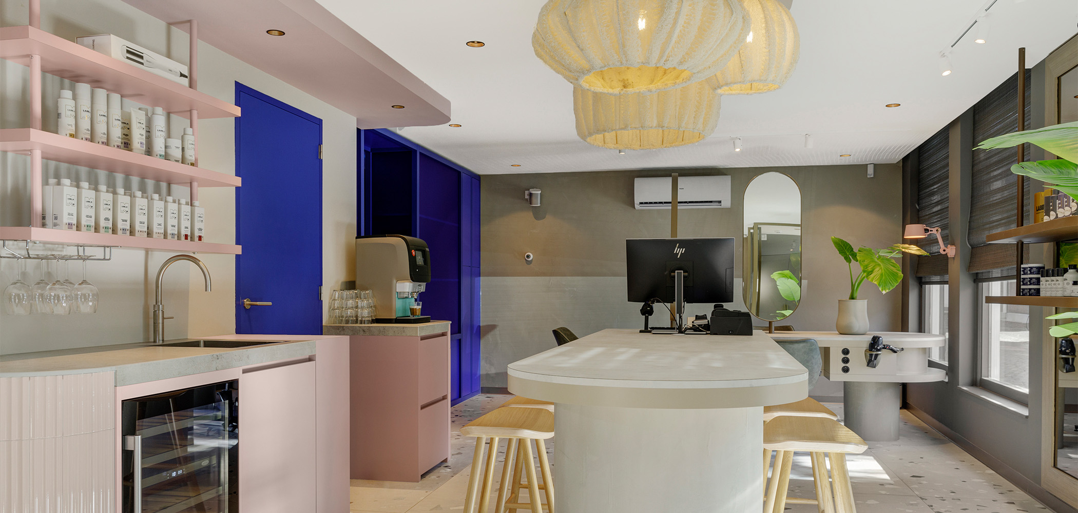 Totally unwind during your visit to the hair salon: what does this require? With this mission, Empower Spaces set out to create a new experiential environment for KOKO Kappers. The new concept is designed to stimulate all the senses through various colors, materials and textures. An innovative 2.0 concept that will be completely innovative. Empower Spaces is a design firm specializing in creating unique space experiences. They come up with concepts, the basis of projects, translate this into design (a visual plan) and also take care of the realization of the design. By working closely with clients and using a combination of traditional craftsmanship and innovative techniques, they transform everyday spaces into extraordinary experiences. In this project, the Bolt Wall Sidefit Small was applied in the color Daybreak Rose.