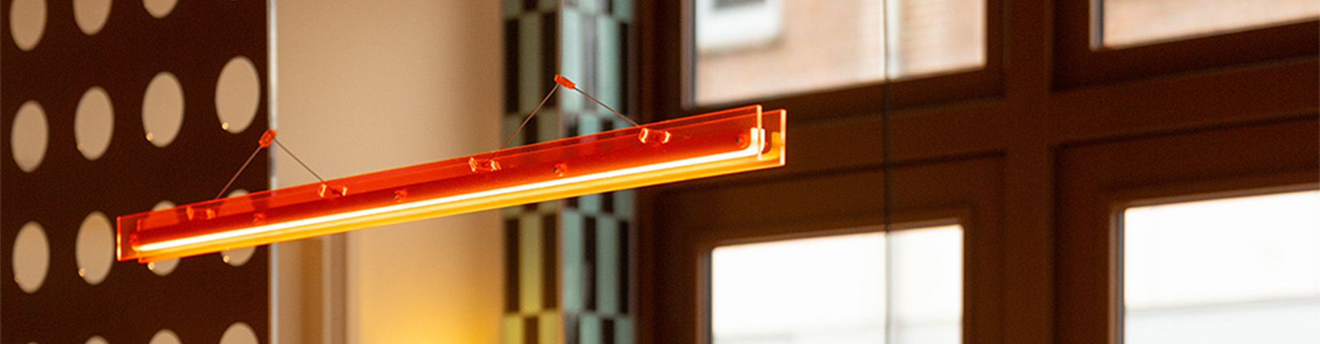 The Bridge is more than just a light source, it’s a statement piece. With its graphic, linear shape and the bold Lava Orange finish, it brings a dynamic accent into the interior. Its minimalistic yet expressive design draws the eye immediately, making it an anchor point in the space. Function and aesthetics go hand in hand: the Bridge provides warm, even light above the bar while adding a touch of boldness that perfectly reflects the playful concept of the new interior.Unique Rhythm