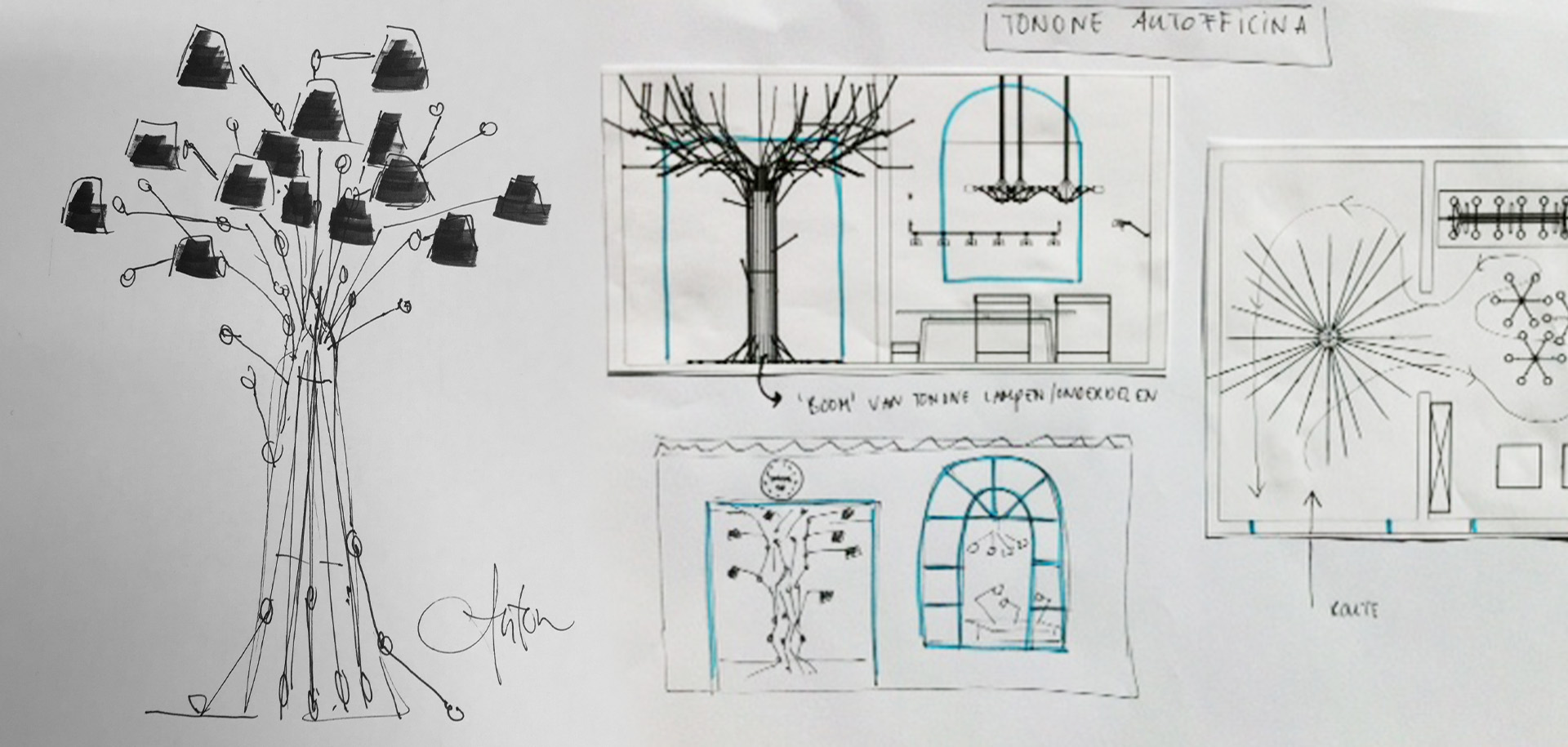 Die Geschichte des Bolt Chandelier reicht zurück zur Designmesse in Mailand im Jahr 2014. Designer Anton de Groof präsentierte dort den allerersten Chandelier und überraschte das Publikum mit einer auffälligen Installation: einem großen Baum, der aus Bolt-Armen aufgebaut war. Mit dieser Installation zeigte Anton, wie sich der Bolt mit ihrer charakteristischen Konstruktion auf vielfältige Weise einsetzen lässt. Sie zog die Aufmerksamkeit der Besucher auf sich und markierte den Beginn einer der bekanntesten Kollektionen von Tonone.