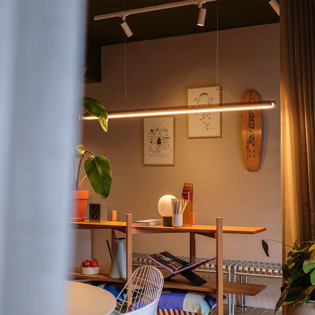 Une lampe LED linéaire qui permet un jeu graphique de lignes et avec laquelle vous pouvez expérimenter la composition.