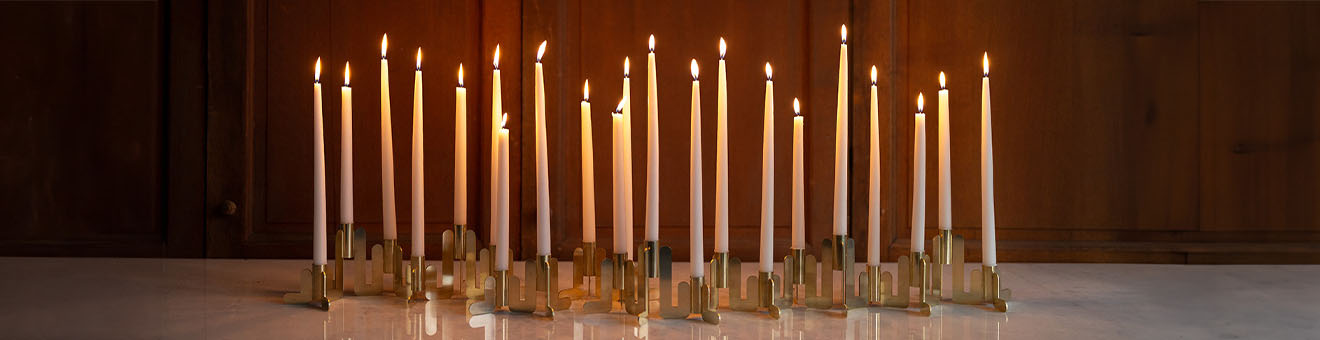 Ce bougeoir modulaire se compose d’éléments en laiton qui s’emboîtent pour former une structure graphique. Le résultat est un objet à la fois techniquement précis et visuellement apaisant. Réalisé en laiton, Lumi est disponible en trois tailles : small, medium et large. Le modèle small accueille une bougie, le medium trois et le large cinq. Les différents formats peuvent être reliés entre eux pour créer une véritable skyline lumineuse. Les hauteurs variées composent un ensemble ludique, tandis que le laiton reflète délicatement la lumière des bougies et apporte une touche chaleureuse à l’espace.