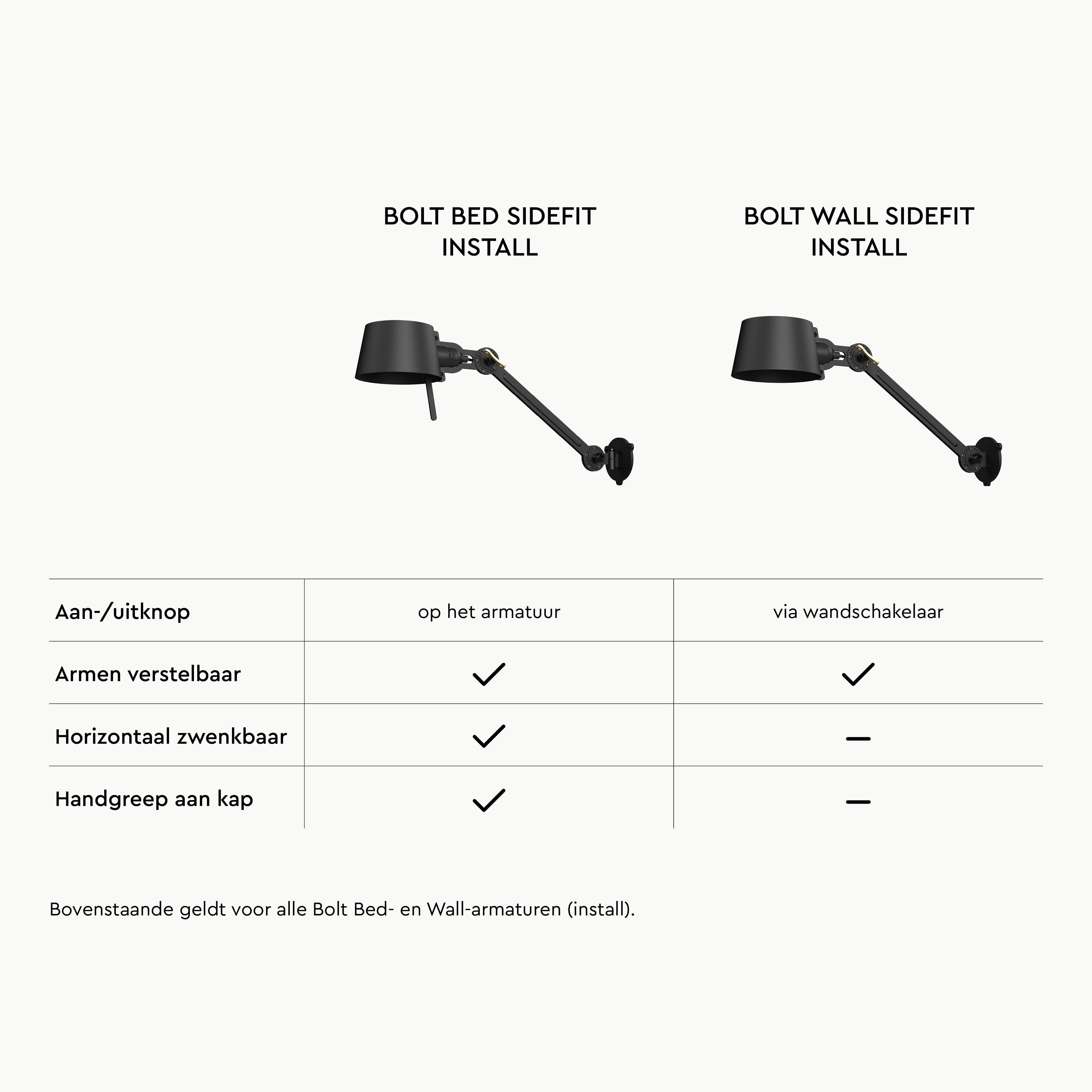 Optioneel: Set 2 x Bolt Bed | bedlampen aan beide zijden van het bed (schakelaar op de fitting aan binnenzijde lamp) | 1 x Bolt Bed Sidefit en 1 x Bolt Bed Sidefit MIRROR