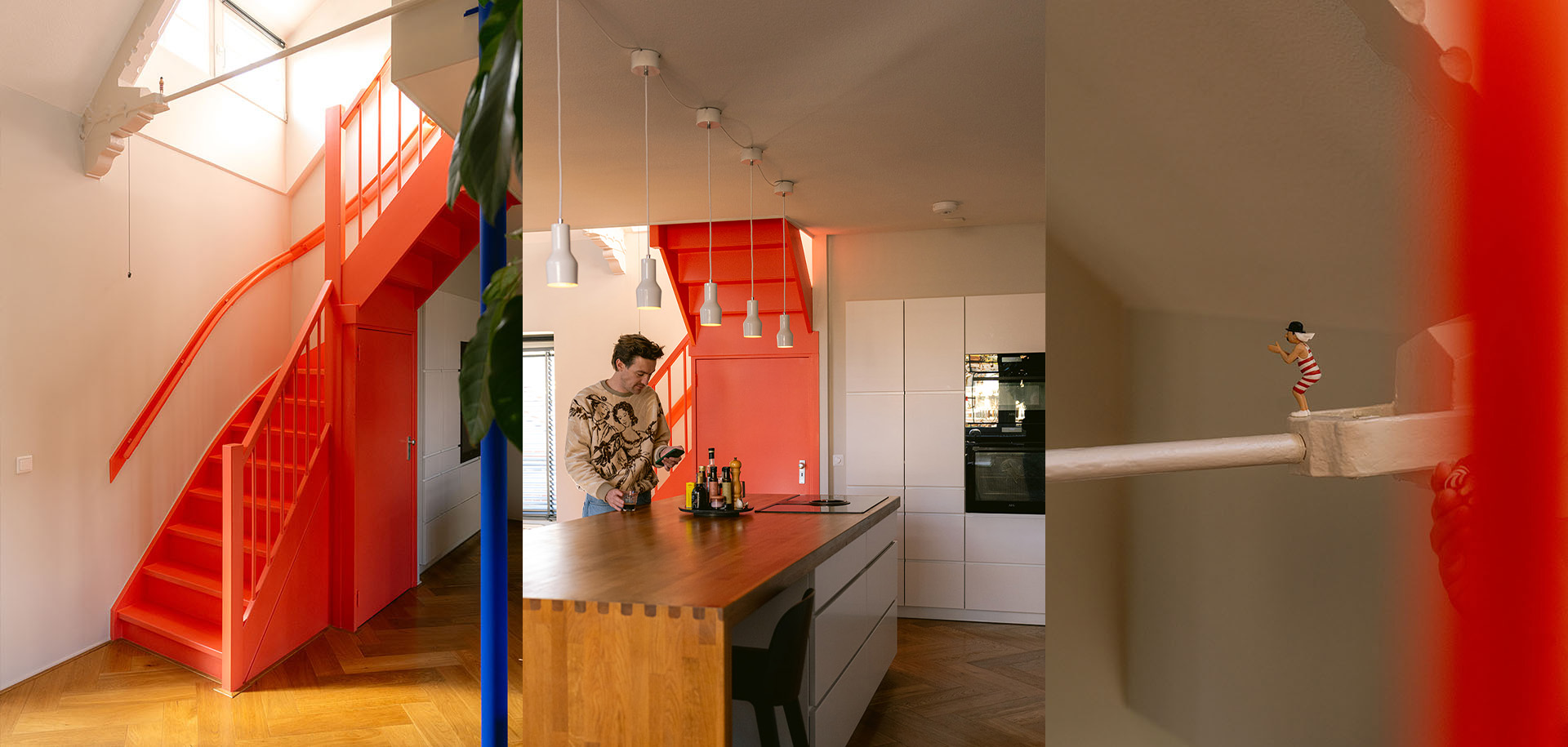 Stap binnen in een Eindhovense loft waar oud en nieuw elkaar op de meest onverwachte manier ontmoeten. Ooit een schoolgebouw, nu een levendig thuis voor twee bewoners die hun liefde voor vintage en design laten zien met een vleugje humor. Interieurontwerper Oda van Oh Studio bracht hun smaken samen in een plan dat lef en warmte uitstraalt.